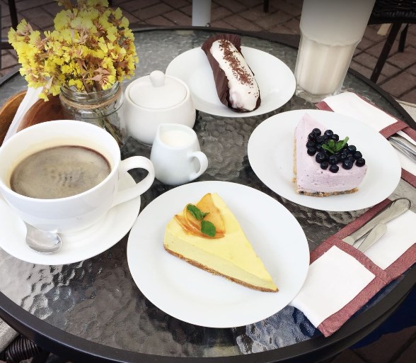 Вкусный кофе, сладости тоже более менее ( пироги вкусные, торты не очень). На 4-ку тянет.