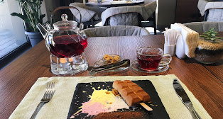 Очень оригинально подают чай в сифоне, потом переливают в прозрачный чайник и ставят на подогрев — это целое представление. Десерты подают тоже оригинально: каждый на особенной тарелке. И, кстати, тут делают самую нежную панакоту из всех, что я пробовал.